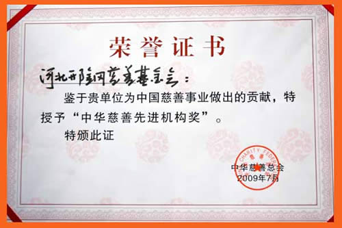 Xingtai Steel Charity Fund was awarded as the China Charity Advanced Organization by The China Charity Federation.