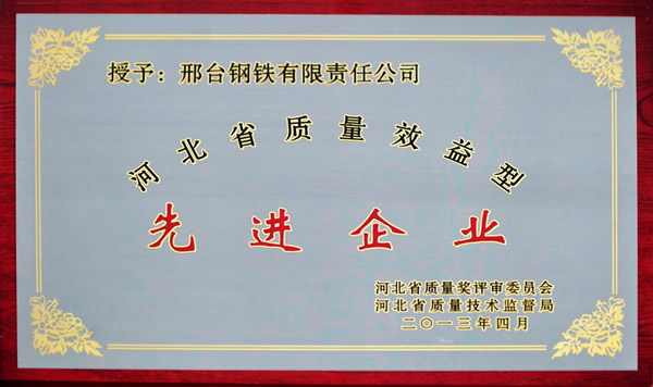 5月27日,邢鋼榮獲2012年“河北省質量效益型先進企業(yè)”稱號。