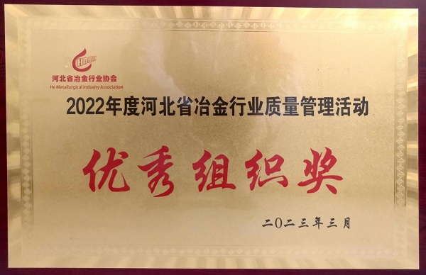 - 邢鋼榮獲“2022年度河北省冶金行業(yè)質(zhì)量管理活動(dòng)優(yōu)秀組織獎(jiǎng)”