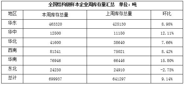 5、華北市場:節(jié)日期間華北市場結構鋼價格大體穩(wěn)定,成交差,現(xiàn)45#碳結鋼鋼廠直發(fā)主流報價:山東魯麗3870-3900元/噸、榮鋼4030元/噸、宣鋼4050元/噸、凌鋼4060-4080元/噸。據(jù)市場方面消息,節(jié)日期間華北地區(qū)結構鋼市場銷貨不佳,庫存大幅積壓,價格反彈壓力較大,節(jié)后下游需求變化仍有待觀察,商家情緒偏空。據(jù)統(tǒng)計,節(jié)中華北地區(qū)結構鋼市場標本企業(yè)庫存累計2.32萬噸,較節(jié)前增加0.3萬噸,環(huán)比增加14.85%。