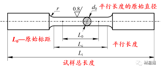 圓形橫截面拉伸試樣的形狀和尺寸符號