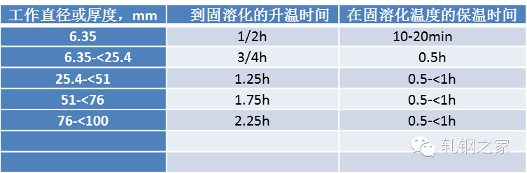 表 3:奧氏體不銹鋼固溶處理加熱時(shí)間