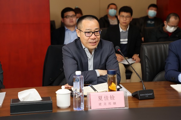 建龍集團(tuán)副總裁夏佳銓對永年地區(qū)客戶長期以來給予邢鋼的支持表示感謝,向客戶介紹了建龍集團(tuán)“雙五千萬噸”的發(fā)展目標(biāo),做強(qiáng)高端工業(yè)用材的的發(fā)展思路,以及實(shí)現(xiàn)“四個轉(zhuǎn)型”的發(fā)展方向。指出:“建龍集團(tuán)對邢鋼的未來發(fā)展充滿信心,將從各方面進(jìn)行全面支持,邢鋼高質(zhì)量的冷鐓鋼產(chǎn)品今后將充分滿足永年客戶的需求,并實(shí)現(xiàn)與客戶的雙贏和共同成長”。對客戶提出的交貨期問題、質(zhì)量問題,要求邢鋼銷售部門與研發(fā)部門、生產(chǎn)部門加強(qiáng)聯(lián)動,快速反應(yīng),提升客戶的滿意度,重塑邢鋼形象。