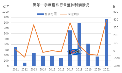 熱點事件:國家統(tǒng)計局?jǐn)?shù)據(jù)顯示,2021年一季度,黑色金屬冶煉和壓延加工業(yè)實現(xiàn)營業(yè)收入20483.1億元,同比增長50.5%;營業(yè)成本18837.3億元,同比增長47.7%;實現(xiàn)利潤總額871.4億元,同比增長387.6%。