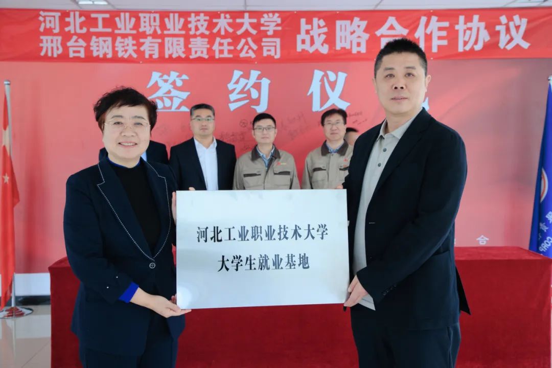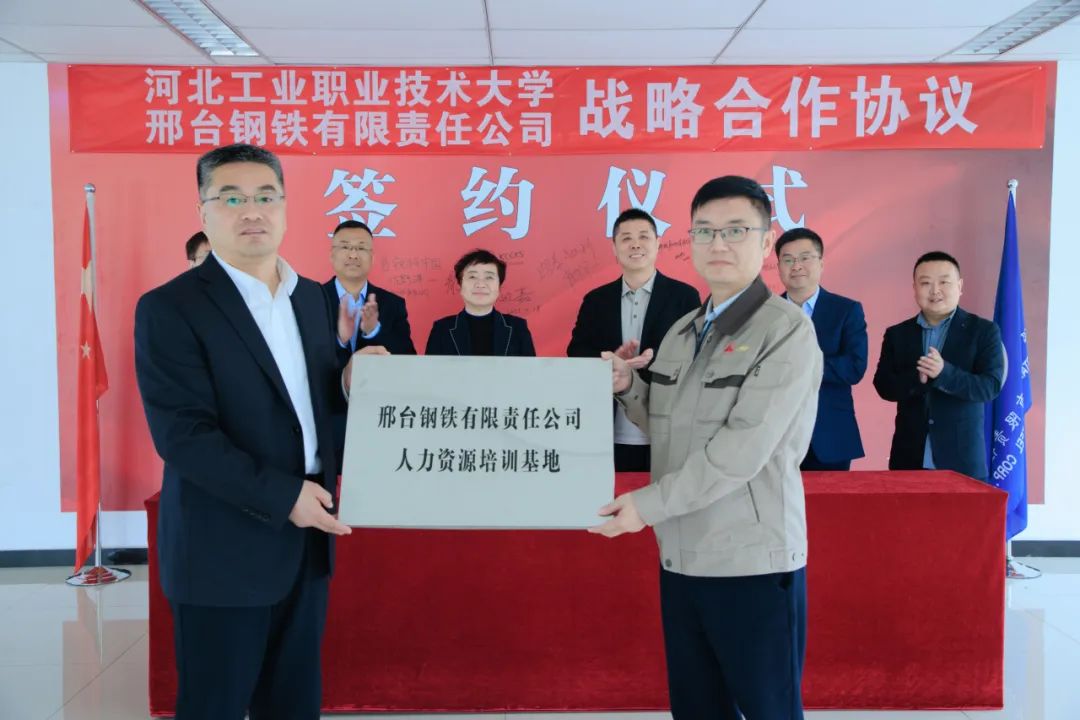 在與會人員的共同見證下,雙方代表簽訂了校企合作協(xié)議。還分別進行了“河北工業(yè)職業(yè)技術大學大學生就業(yè)基地”、“河北工業(yè)職業(yè)技術大學實踐教學基地”、“邢臺鋼鐵有限責任公司人力資源培訓基地”授牌互認。