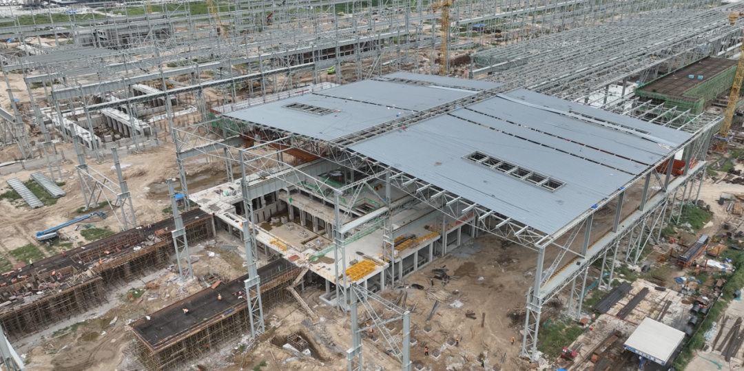 走在項(xiàng)目現(xiàn)場(chǎng),隨處可見矗立的鋼結(jié)構(gòu)和封頂?shù)慕ㄖ黧w。項(xiàng)目主要部分從西向東分別是煉鐵區(qū)域、煉鋼區(qū)域和軋鋼區(qū)域,項(xiàng)目鋼結(jié)構(gòu)工程已全面鋪開。