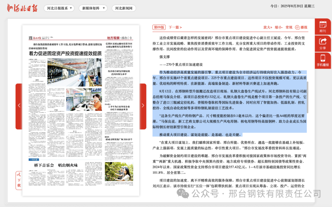 作為推動經(jīng)濟高質量發(fā)展的強引擎,重點項目建設為全市經(jīng)濟運行持續(xù)向好注入強勁動力。今年,邢臺市實施45個省重點建設項目、225個市重點建設項目,這些項目不僅投資規(guī)模可觀,更以高質量、優(yōu)結構的鮮明特質,在新能源、高端裝備制造、新材料等新興賽道上加速奔跑。